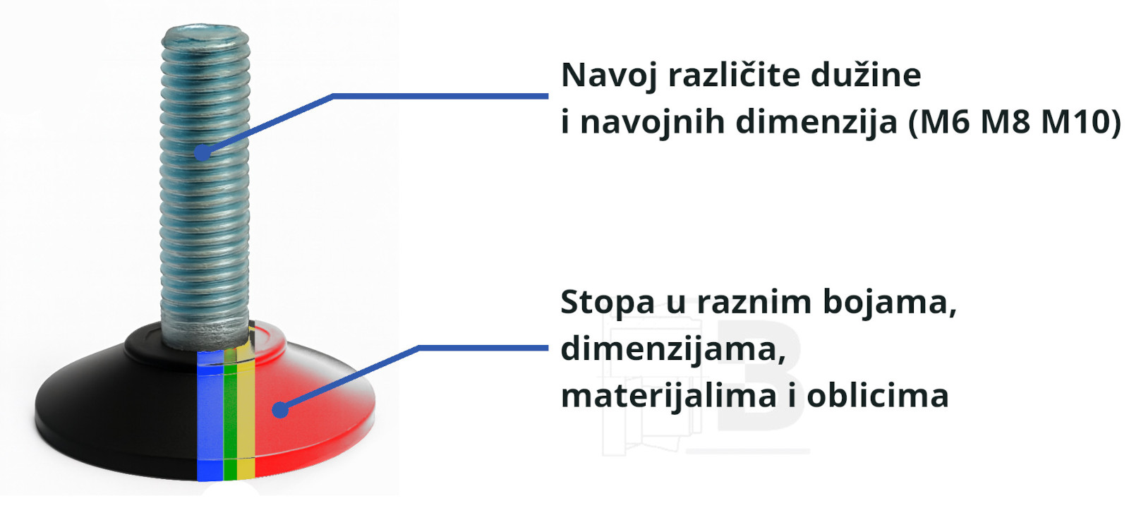 Uvek birajte plastične nogice sa metalnim navojem koje pružaju jak i stabilan oslonac